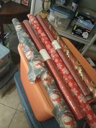 Christmas bows, wreaths, ornaments, lights, wrapping paper, pillows, little Christmas 🎄 tree, many Christmas decorations.