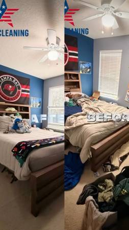 β’ Full house cleaning (bedrooms, bathrooms, kitchen, living areas)