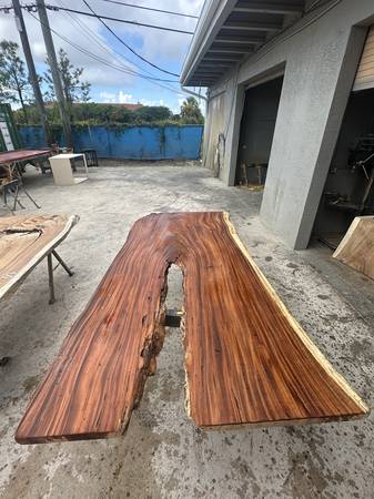 We have a large selection of exotic hardwoods in stock. We source our lumber from the Pacific, including Hawaii, Fiji and Costa Rica . We go after high figured pieces with amazing grain action and color. Our slabs are kiln dried, fed through a wide belt sander at 100 grit , leveled and ready for pick up, delivery or shipping. Slabs range between $15-$20 per Board Foot raw for bulk purchases. We offer individual slabs as well. We have the best products in town for a great price.
