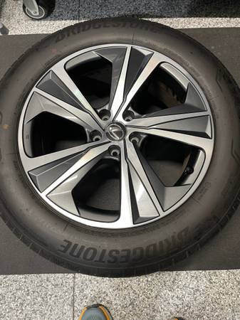 Nice set of Wheels and Tire with 8000 miles on them . Off a 2024 Lexus RX350. INCLUDES 4 FACTORY 19 INCH WHEELS, CENTERCAPS AND 235/60/19 103V BRIDGESTONE ALENZA SPORT A/S TIRES. NO SENSORS OR LUG NUTS INCLUDED.